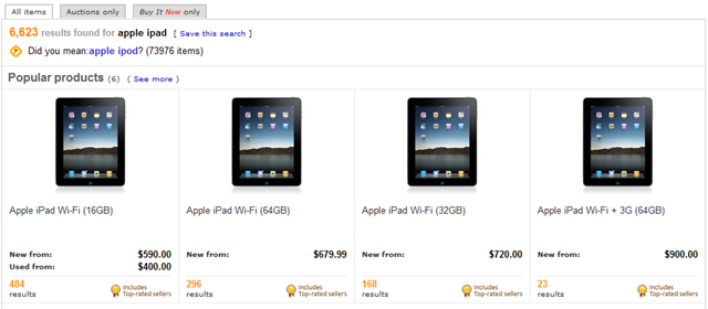 As everyone has not been able to avoid – today is iPad Day in the US. Internationally the iPad does not become available for a few more weeks. However, industrious eBayer’s have come to the rescue to gobbled up some of the iPad’s from stateside stores and are making them available for sale via the auction website.