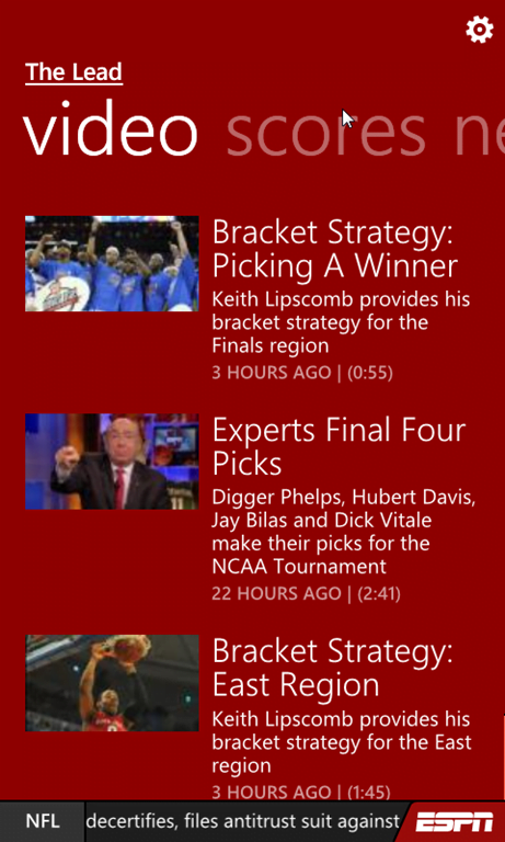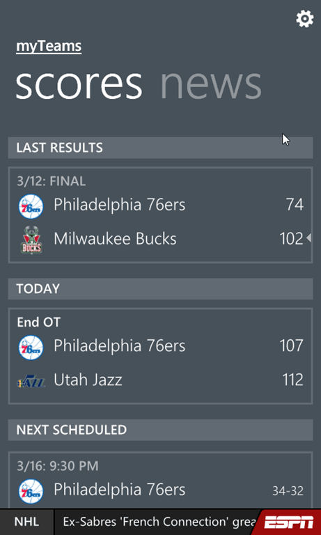 - myTeams: Follow your favorite teams in one place. Pop in to get scoring updates or catch up on news coverage of your favorite teams from ESPN and from local sources