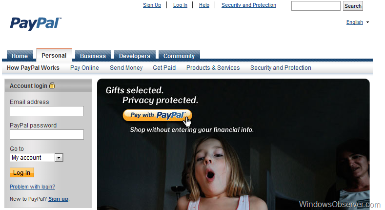 Take a look at the genuine PayPal site and the bogus one side by side: