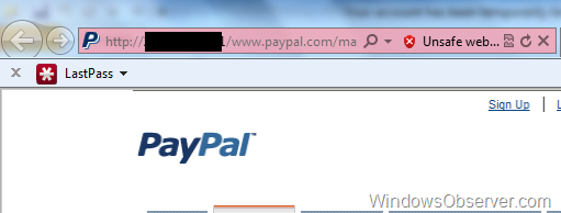 As you can see I visited the web address because I wanted to show you the SmartScreen function works. While I was there I took a screen shot of the bogus page to show you how valid a fake site can look.