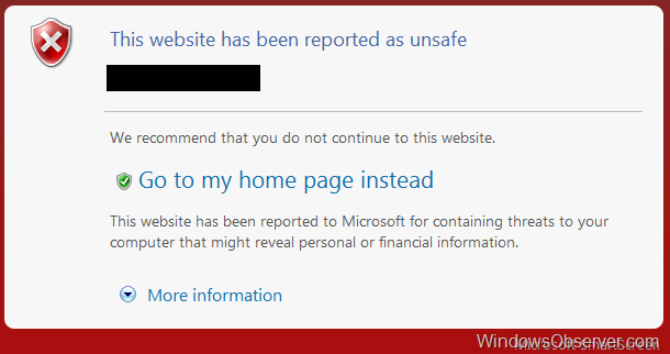 Now the next step here is to show you the benefit of the SmartScreen technology that is in Internet Explorer 9. SmartScreen will show you if a page has been reported as unsafe and encourages you to not go any further. Notice I say encourages you because it does not completely stop you from visiting the web page in question. Ultimately you have to decide the next step. Your decision and good software are both part of a solid defense against bogus websites.