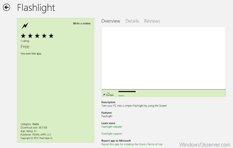 Of course we know that no app store is official until it gets its first flashlight app and now the Windows Store has one of its own.