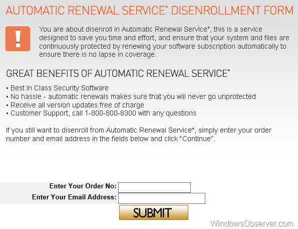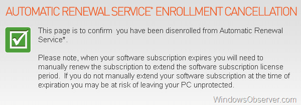 If you do not want your subscription automatically renewed, you may discontinue Automatic Renewal Service at any time.