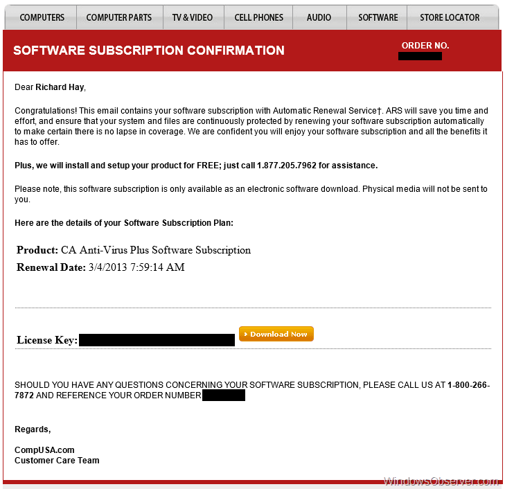 I am not sure how long this has been going on but whether there is one or ten emails telling you about the renewal the process of automatically subscribing you after the fact without explaining what ARS means at any point in the ordering process is unprofessional, misleading and downright an unacceptable practice. It should be stopped immediately by CompUSA.