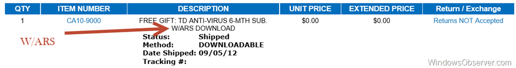 So a couple of days after my order shipped I received my shipping confirmation email for my hardware I bought along with this email about the Automatic Renewal Service or ARS I apparently subscribed to with this order.