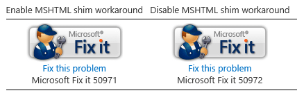 The Fix It solutions are very straight forward as one implements the work around and the other disables it.
