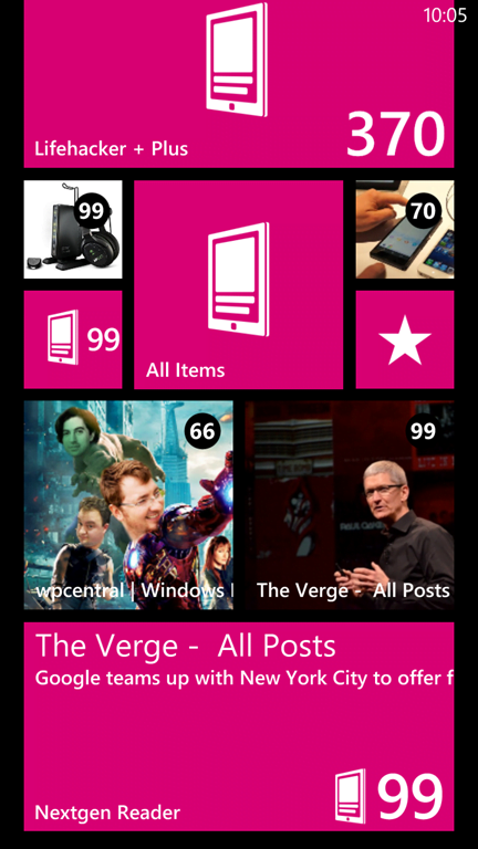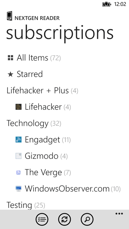 Here are some screenshots of the Windows Phone 8 update of Nextgen Reader: