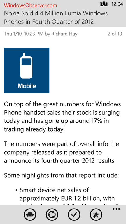 As a special thanks to users of Nextgen Reader the developer has discounted the current version by 33% so the app will only cost $1.29 (vice normal price of $1.99). This discount will continue until the Windows Phone 8 release hits the Windows Phone Store.