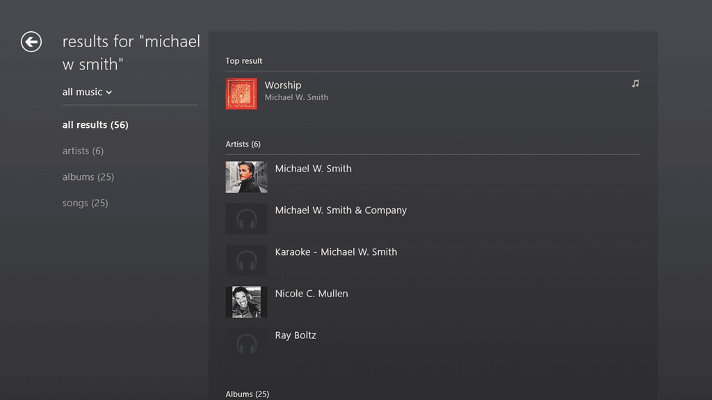 - More smoothly open the Xbox Music app after selecting to ‘Play top songs’ or ‘Explore album’ from a Windows Search result.