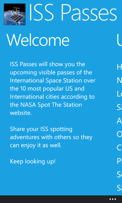Now instead of just showing the upcoming visible ISS passes over Jax this new app shows the visible ISS Passes over the 10 most popular US and International cities according to NASA’s Spot The Station website.