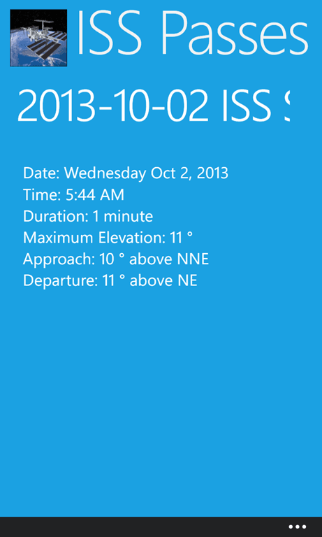 The result of that work is an app I have named ISS Passes and it uses the same basic premise that ISS Jax uses but expands the available options.