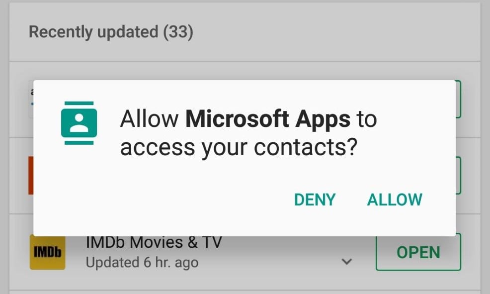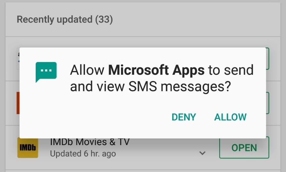• Three permissions are required on your Android device for the Microsoft Apps app so that Your Phone can access your SMS Messages, Contacts and Phone calling services.